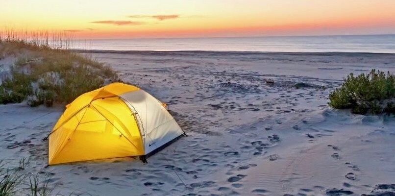 Overnight camping on white beaches enjoying the sunrise over the sea